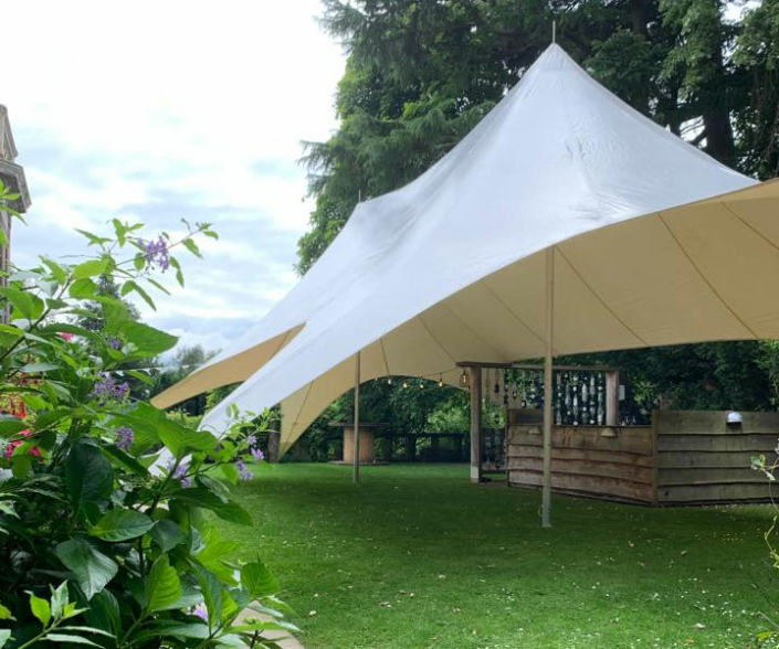 The TwinStar mixes a traditional shape with a modern design and materials to give a large open space with a large opening, this style marquee is great for mixing the inside and outsid with no obstuctions to spoil the view, traditional marquees would have poles in the way, with this design outside poles are eliminated.